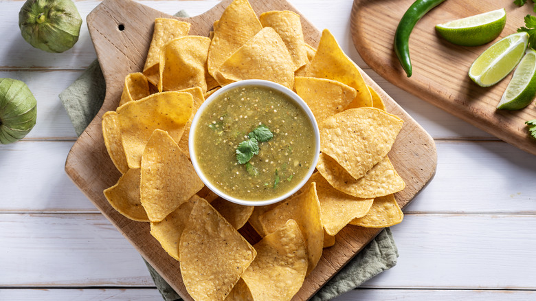 Furthermore, a neutral oil with a higher smoke point is optimal for deep frying tortillas without masking or affecting their earthy, savory corn flavor. Canola, safflower, and avocado oil would all be good choices. Simplicity also applies to tortilla chip seasonings — Santibañez recommends using only fine salt and sprinkling it over "the chips while they are hot so that the salt attaches." While you can use tajin or chili powder, it's best to keep tortilla chips simple so as not to upstage the zesty, spicy, and more complex dipping salsas, queso, or guacamole.