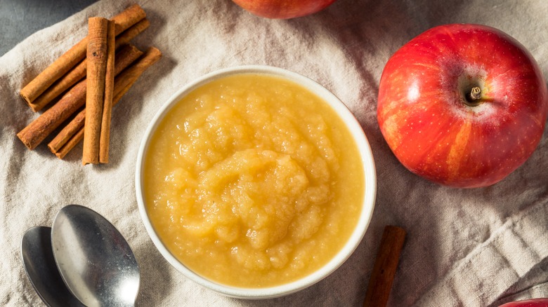 Apple butter doesn't quite qualify as a compound butter as it involves slowly cooking down butter with many other ingredients, but nonetheless, the combination of roasted apples and rich butter offers peak fall vibes. If you're craving apple-forward butter, but don't have the time or desire to make a complex recipe like this roasted chai apple butter, applesauce butter is a great alternative. The crisp, warm flavors of applesauce meld deliciously with softened butter and preserve the consistency of butter well enough that it can be used in place of plain butter in baking recipes.