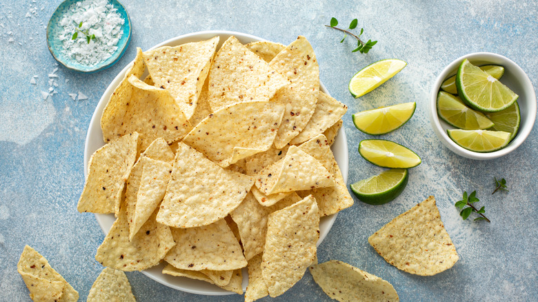 Santibañez explains, "The tortilla chip needs to be harmless, not a heavy item. You use a tortilla chip to pick up other things, so you don't want the chip to overpower the main item." If you're looking to try out a spicy version that doesn't overdo it on the seasonings, you can look to Tasting Table's recipe for homemade chili lime tortilla chips — you can even lessen the number of seasonings or remove an ingredient to keep it simpler.