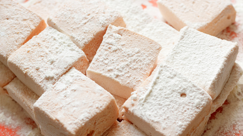 If you make marshmallows yourself, you might already know that they are a relatively easy confection to tinker with. You can play with different extracts or herbal infusions to take your squishy mallow to the next level. Since the marshmallows only really have a vanilla flavor, more dominant flavors — like liqueur — can come to the forefront. Rum and bourbon are two of the best and most versatile spirits that you can use for your marshmallows because they both pair well with the classic cinnamon graham cracker and won't conflict with your chocolate of choice. You can also play with tequila or mezcal — but those flavors just don't carry over well into a s'more. Regardless of your spirit, you'll want to dissolve your alcohol directly into the bloomed gelatin sheets for the best flavor.