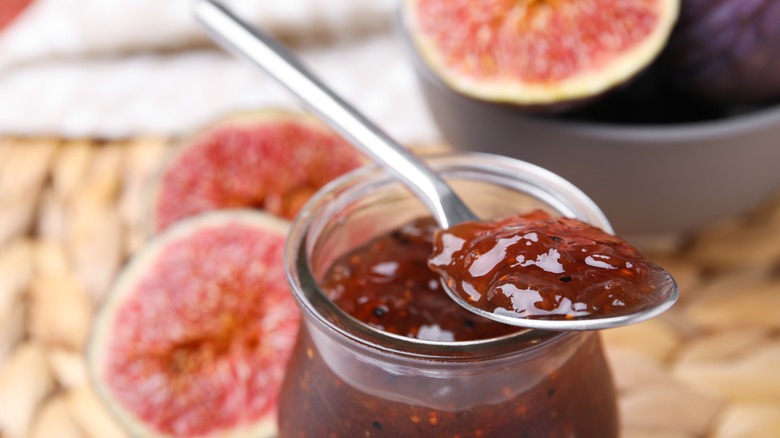 You're more likely to see s'mores adorned with fig spread at a Michelin-star restaurant than you are at someone's backyard barbecue, which is ultimately why it made this list. Fig spread is made of ripe, juicy fruits that tend not to store well for long-distance shipping, which is why many people put them into a jam or spread. You can find fig spreads flavored with primarily sweet ingredients, including vanilla bean pods and sugar. Or you can make one yourself and play with the sweet and salty flavors with the help of chili and balsamic vinegar.