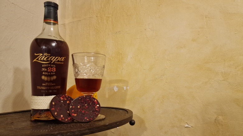 As far as pairing Zacapa 23 with food, dark chocolate balances out the rum's sugary components while aligning with its taste profile, and aged dark rums also go great with barbequed meats, such as fatty ribs, as they help cut through the fat.