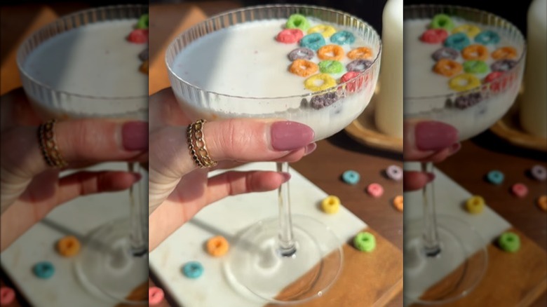 However, when that dairy has been sweetened by those cereals that Mom would never let you eat as a kid, it elevates your adult beverage to a dessert cocktail that is perfect for a Sunday brunch or for wrapping up a New Year's Eve party or girls' night out. It's easy to do and generally involves whatever milk you choose, a handful of your favorite cereal, your preferred alcohol, and a cocktail shaker. After a few quick shakes, you've got a boozy cocktail based on the milky cereal flavor you know and love.