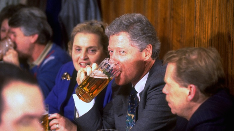 Bill Clinton was not known as a heavy drinker — which shouldn't be too surprising given his administration passed the law setting blood alcohol limits for drivers. However, when he did drink, he was said to prefer a snakebite. Made of one part lager and one part hard cider, Clinton was once denied this drink at a U.K. pub and told it was illegal. Though the drink wasn't outlawed, some pubs simply refused to serve it — even to heads of state — because it's primarily ordered by underage drinkers.