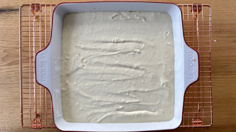 Step 11: Pour the batter over the crust