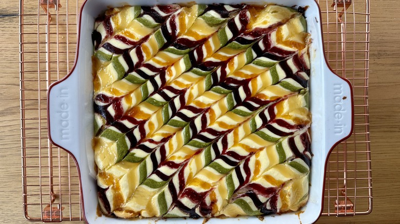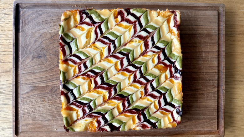 Rainbow cheesecake is a vibrant, festive way to celebrate a variety of occasions, from birthday parties to family gatherings, holidays, Pride events, and more. But recipe developer Katie Rosenhouse just isn't a fan of the traditional version. "I use gel food coloring for all kinds of desserts, from French macarons to cake frostings and more — especially if I'm creating something with a specific theme or color scheme in mind. But when I'm making a dessert to serve the whole family, I always think twice about grabbing those bottles of food coloring, particularly when kids are involved."