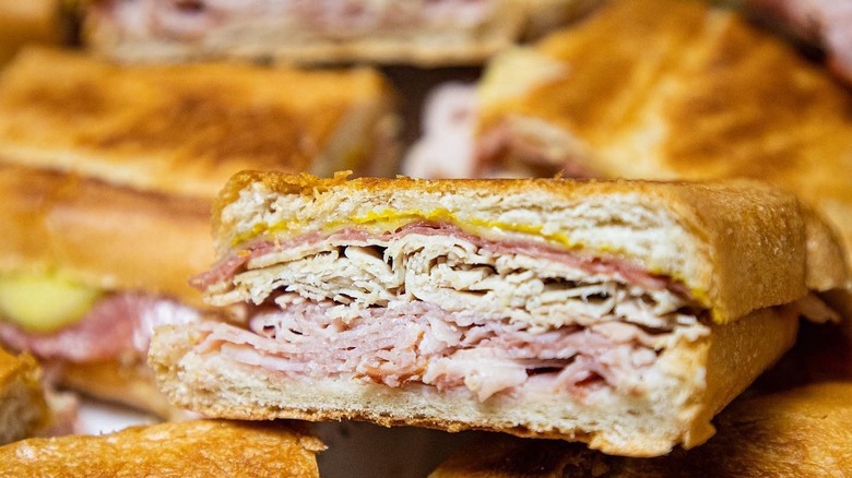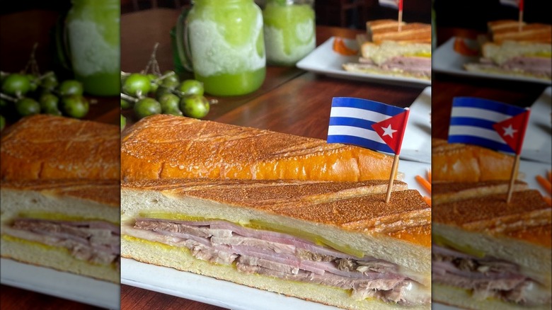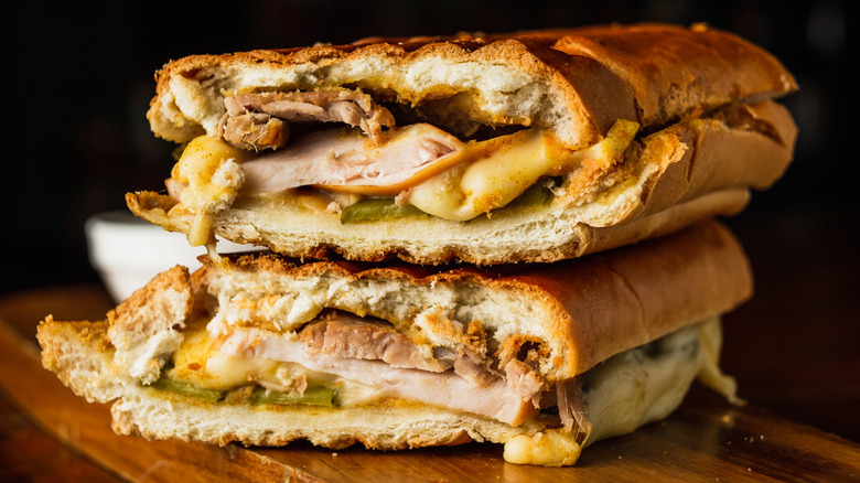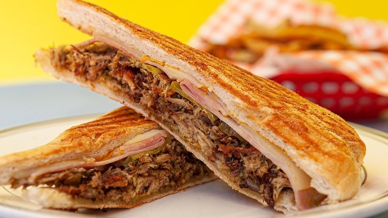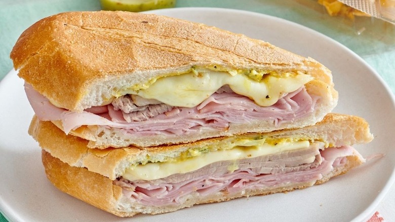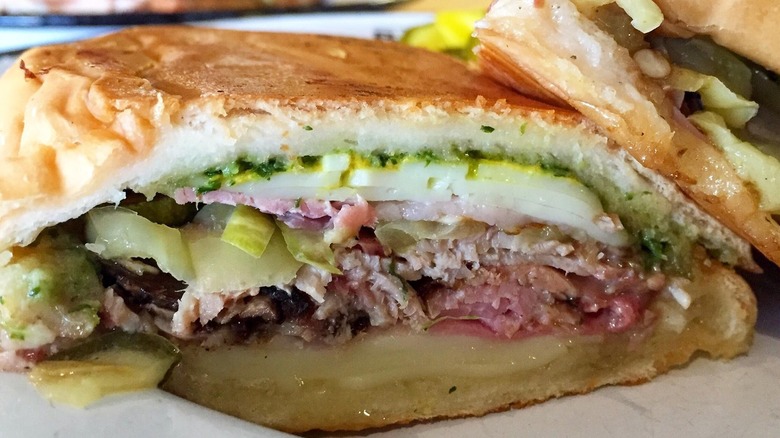 The Cuban sandwich, with its fluffy bread layered with ham, roasted pork, Swiss cheese, pickles, and mustard, is a culinary behemoth that's become a veritable American classic. Despite its reliance on imported ingredients (as the Swiss cheese component makes abundantly clear), this sandwich did, indeed, originate in Cuba, as the name implies.