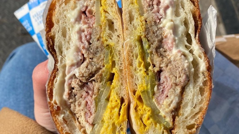 This one is made with pork shoulder that's been cooked slowly in bacon fat before being combined with the usual ham, Swiss cheese, pickles, mayo, and mustard. All of it comes on some of the finest bread New York City has to offer, straight from the award-winning Sullivan Street Bakery.