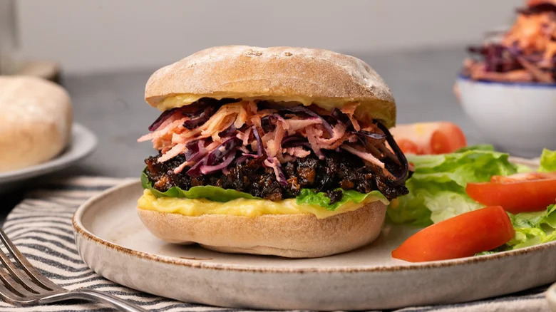 Here's another great main dish recipe that similarly uses red cabbage in a slaw that tops the protein. This one gets a big flavor boost from the yum yum sauce, which is a key feature in some of the best dishes you can find in Japanese steakhouses and hibachi restaurants. Of course, the chicken is a star of the show here as well. It gets a buttermilk bath before being fried, which makes the chicken supremely succulent and tender. Combined with the slaw, this is one sandwich you won't want to miss.