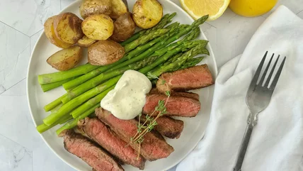 For year-round steak, this recipe sears a lightly spiced strip loin and also shows you how to mix up a lemon-infused, herby whipped feta topping.
