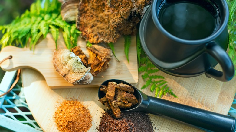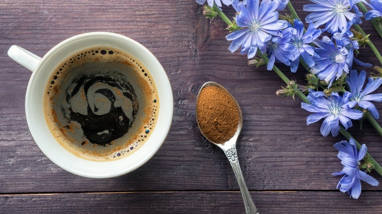 That isn't to say that chicory doesn't boast some unique health benefits of its own. Cutting back on the java buzz is always a good thing, health-wise. In the 1800s, folks turned to brewed chicory root as a home remedy for treating common ailments like jaundice, rheumatism, enlarged liver, and gout. Chicory is also a significant source of the prebiotic inulin, which supports gut health. But, at the end of the day, chicory coffee is an old reliable beverage that gets the job done. It's thrifty, caffeine-free, delicious, and (we think) super cool, but unlike the chagaccino, it isn't "hip and trendy," per se. Also, if you're allergic to ragweed or birch pollen, chicory coffee probably isn't for you.