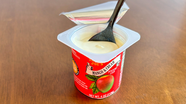 Compared to all of the other "and cream" yogurt flavors that TJ's offers, the mango one honed in on that creamy aspect, which is what earns it the top spot on this list. The mango flavor is prevalent while still maintaining a certain mellowness — it's just really tasty yogurt, requiring no other toppings to taste delicious.