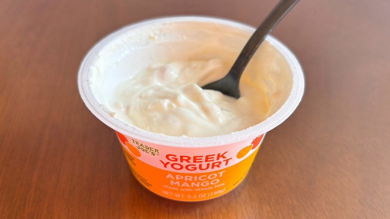 While Trader Joe's mango Greek yogurt wasn't the best, the apricot mango Greek yogurt pleasantly surprised me with its abundance of fruity flavor. To be fair, I think that the apricot aspect of the yogurt does most of the heavy lifting, completely infusing the creamy carton with a juicy brightness that rivals the peach flavor and manages to beat it, too.
