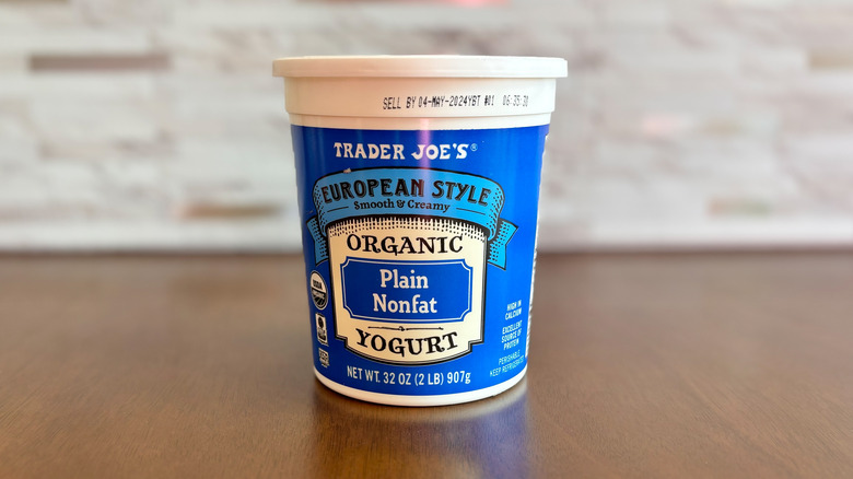 Yogurt may not necessarily be at the top of your list when you head to Trader Joe's for a weekly grocery haul, but nonetheless, the ever-popular grocery store does offer a plethora of dairy-laden goods. Whether you stick with regular yogurt or enjoy sour-tasting Greek yogurt, there's a little something for everyone in Trader Joe's dairy section in terms of yogurt flavors and styles.
