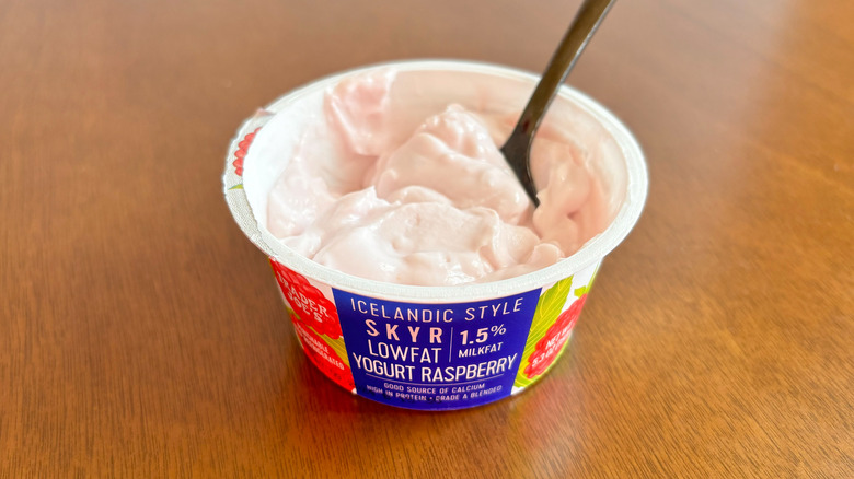 As a fan of all things raspberry, both the fruit itself and raspberry-flavored products, I had high hopes for all of the Trader Joe's raspberry yogurts on this list. Some varieties were pretty tasty, but the low-fat Icelandic-style skyr raspberry yogurt definitely wasn't. Though it was thick and creamy, the raspberry flavor was nowhere to be found, which left me feeling deprived with each bite.