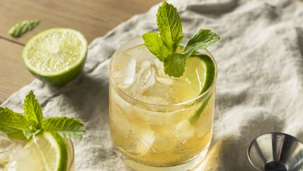 The sling is made with gin, also mixed with ginger beer and lime juice, and classically served in a short rocks glass. Traditionally, the liquor base is old Tom gin, an old-school gin style made with a small amount of added sugar and barrel-aged for a short duration. Its palate is sweeter and softer but quintessential of Britsh gin, making it a beautiful pairing with ginger beer.