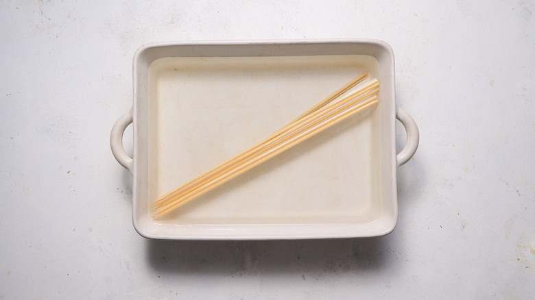 While the shrimp is marinating, soak the wooden skewers for 15–20 minutes.