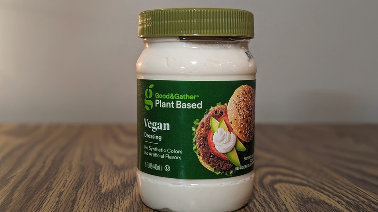 Good & Gather is Target's affordably priced, in-house grocery brand. Its vegan spread is made with canola oil, vinegar, mustard seed, and lemon juice. This plant-based mayonnaise offers an exceptionally thick texture akin to vanilla icing. But please — don't use it on your next birthday cake.