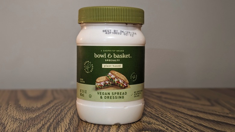 Thanks to my local grocery store, I present Bowl & Basket's plant-based creamy condiment. Bowl & Basket is ShopRite's — a lower-Northeastern grocery store chain's — in-house brand. It offers a plethora of pre-made meal and ingredient options, from dressings and desserts to deli meats. Among its repertoire of pantry staples is this plant-based dressing and spread — perfect for all your veggie-based sandwich and flavorful vegan tuna salad needs.