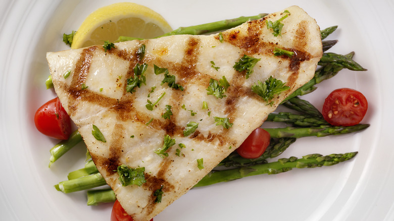 When choosing a good fish to buy, avoid any with cloudy eyes — this is a sign they're no longer fresh. The fish also shouldn't smell fishy, so if you're already picking up this scent from your cut, it's a bad sign. Generally, fish shouldn't smell like anything at all except maybe a light salty scent. If you're buying fish filets, they should be nice and firm — again, you can smell the filets to make sure you're not picking up on anything fishy. When in doubt, don't be afraid to ask fishmongers for help picking a good filet. They'll be able to help you find some that will grill nicely for your skill level.