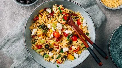 So, the next time you try out our chicken pasta salad recipe or Southwest pasta salad, consider swapping the rotini for orzo, small shells, or ditalini. Then take some time to chop the veggies, herbs, and chicken, before tossing them with the dressing. Your pasta salad will be tastier, easier to eat, and more attractive to look at — what's not to love?