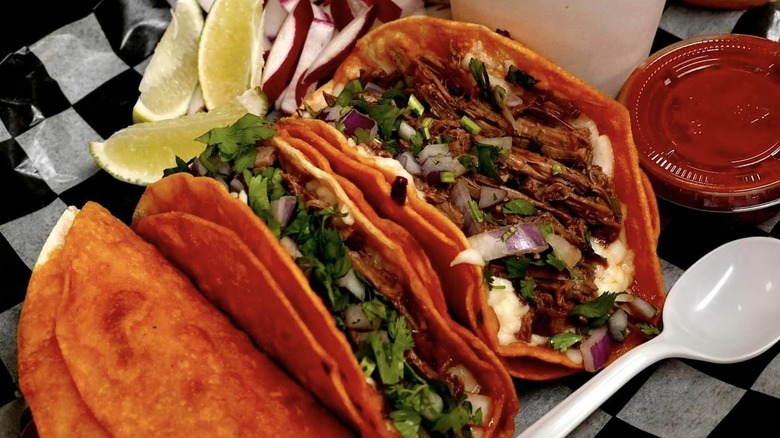 A new favorite place for myself and my friends, I quite literally dream about Los Barbaros Birria, and am counting down the days until I visit it again. If you're unfamiliar with how birria typically works, you order your main dish — whether it's tacos, quesabirrias, mulitas, or something else — and it comes with a large cup of birria broth for dipping your food. The broth also serves as a sort of consommé, so feel free to grab a spoon or take some sips; you'll find meat in there, as well.