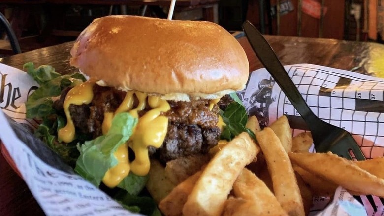 You can't go wrong with a burger here, but as far as appetizers go, the Bavarian pretzels, fried pickles, and cowboy sliders are great choices. The short rib grilled cheese sandwich is a staple, along with the black bean burger. You can also get your beach-trip pulled pork fill here, with different variations of it available on the menu.