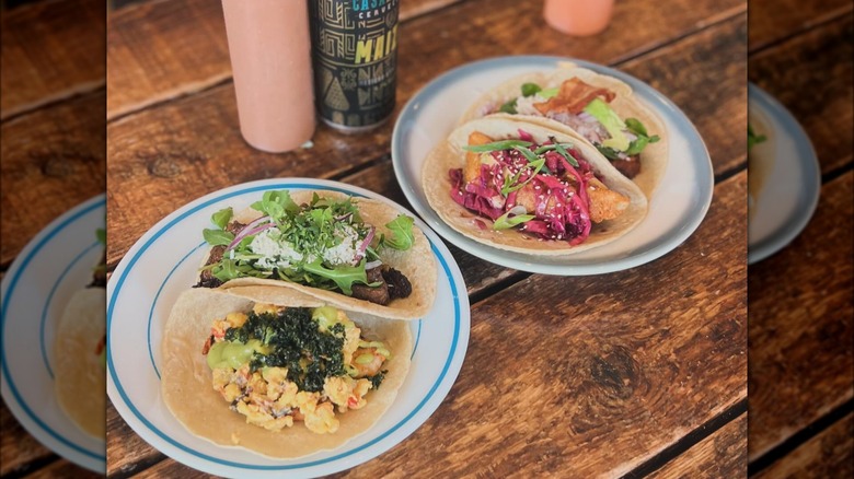 If you're looking for a bit of style with your taco, look no further than Antique Taco. Husband-and-wife duo Rick and Ashley Ortiz have combined his Mexican heritage with her love of collecting antiques. Per the restaurant's website, vintage treasures like old tables and mismatched china embellish the taqueria with beauty, soul, and history, but it's the chef's "farmer's market style tacos" that have put this spot on the map. With his extensive and international culinary background, Rick wanted to utilize the best of what's available seasonally in the Midwest while still pulling from his vast experience and heritage.