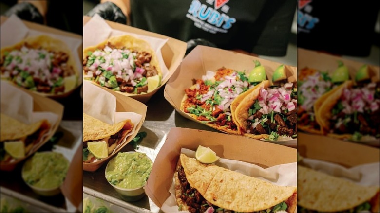 Some taquerias are flippant about their vegetarian tacos, rarely venturing beyond a filling of beans and rice. At Rubi's, vegetarian tacos make up nearly half the menu, but most noteworthy is the taco huitlacoche. Mexico's huitlacoche, also called corn smut, is a fluffy, marshmallow-like seasonal fungus that can appear on corn during periods of heavy rain. Because of its seasonality, it's considered a delicacy. Rarely will you find it served so humbly in a taco adorned with only onion and cilantro. When it's available, in addition to tacos, Rubi's also serves huitlacoche as a quesadilla topped with griddled cheese.
