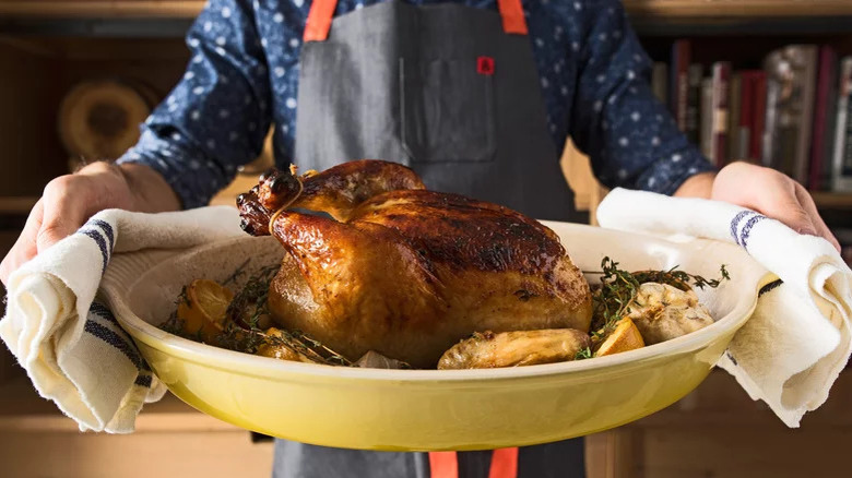 Whether you're throwing an intimate dinner party at your house or having your entire family over for a home-cooked meal, presenting a hot, freshly roasted chicken is an impressive sight every time. Not only is a whole bird enough food to feed a crowd but this type of poultry is also one of the most versatile around. Crispy on the outside and juicy on the inside, the chicken's mild flavor can absorb whatever sauce or seasonings you like.