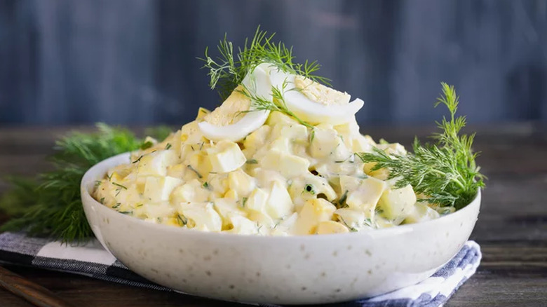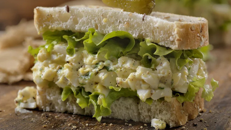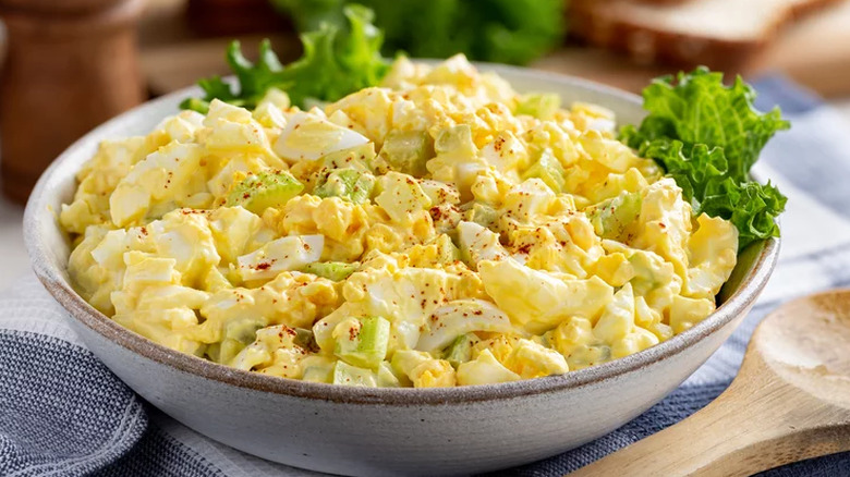 Egg salad can be decadent and delicious, but the store-bought, gloopy recipe can turn a lot of people off of it. And it's easy to see why poorly-made egg salad can have such a big impact. These store-bought or mass-produced salads can be watery if there's too much mayo or take on the profile of undistinguishable mush with no texture. It's a dish that can go wrong in so many ways — which is why making your own is the best way to ensure a great, consistent dish. With a little bit of know-how and these tips and tricks, you can make a crowd-pleasing egg salad in no time.