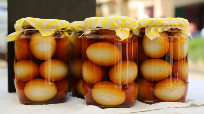 Or, try an unexpected pickle to seriously upgrade your egg salad: pickled eggs. You can either make your entire egg salad using pickled eggs or just add a couple to give it extra oomph. Don't be intimidated by the sound of pickled eggs if you've never had or made them. Simply leave your hard-boiled eggs in the leftover pickling liquid overnight and they'll be ready to dice up and add to your salad in the morning.