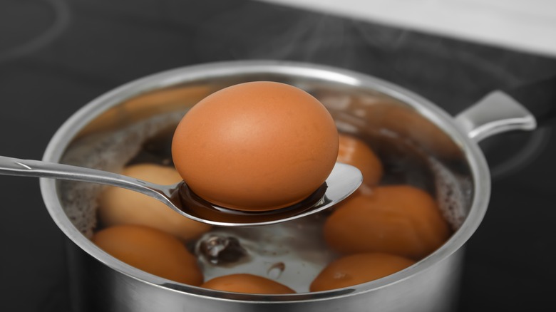 The trick to making a good egg salad is ensuring your eggs are perfectly cooked. Most people worry about their eggs coming out undercooked. After all, if the yolks are still runny, it won't work at all in an egg salad. You might even be inclined to leave them in the water for longer to prevent them from coming out soft. However, some people don't realize that overcooking your eggs will make them chalky, and the resulting egg salad can be dry, greenish, and gluey. Overcooked eggs may even taste like sulfur.
