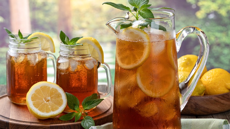 You can also lean more into the sweet tea theme with citrus. Slices of oranges and lemons bring a sweet, zesty flavor to the brine while the citric acid works to tenderize the ham further. For a little more tang, sprinkle in mustard powder and apple cider vinegar. To brine the ham, add it to a plastic bag and pour the sweet tea on top, leaving it to cure for 4 to 12 hours in the fridge. Once it's done, drain the liquid and pat the ham dry before cooking. This earthy, sweet ham can be served with mac and cheese, braised sweet potatoes, or a classic green bean casserole.