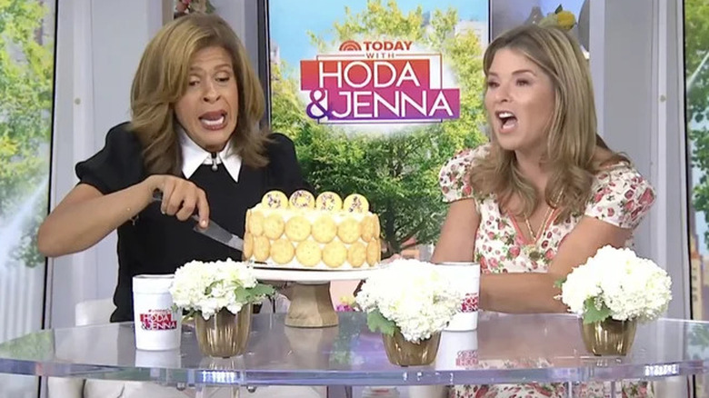 Simple might even be an understatement: The cake itself is just two main ingredients. The boxed yellow cake mix meets crushed Ritz crackers, and after following the instructions on the cake box, it can go right into the oven. Beyond the sheer ease factor, the crackers add a delicious richness to the cake batter. The saltiness will actually enhance the sweetness of the cake and bring added moisture. Kotb's vanilla-frosted cake was decorated with whole Ritz crackers, so there was no mistaking the dish's star. But you can also blitz the crackers into a fine crumb and coat the outside of the cake after frosting. Plus, this easy baking hack is not just for vanilla cake. Ritz crackers would be a great addition to chocolate or red velvet cake mixes as well; the saltiness of the snack will complement almost any cake flavor you can possibly dream up.