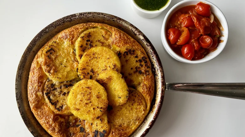 Fried Polenta Frittata with Cherry Tomato Sauce