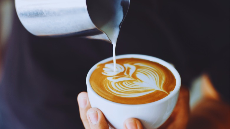 When asked about what coffees to pair with lighter breads, Gasparian's answer was to the point: "Lattes all day, smooth and delicious just like a brioche." The latte — which is slightly frothier than a flat white and slightly less so than a cappuccino — is just one style of coffee that plays on the textural effect of steamed milk. A shot of espresso is poured into a cup and topped with freshly steamed milk, leaving a nice layer of soft foam on the very top.