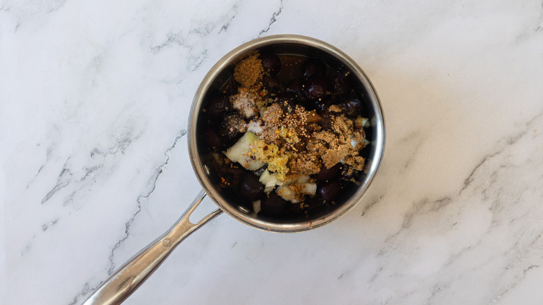 - Combine all of the chutney ingredients in a saucepan.