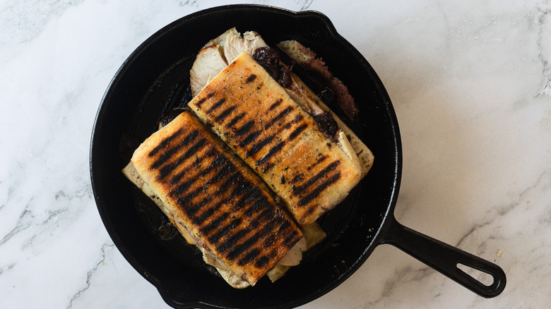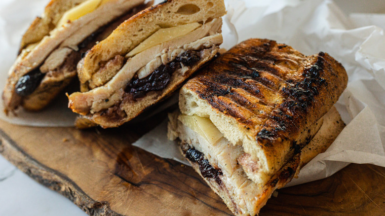 The best part of this sandwich is that one of its main components, the chutney, can be made well in advance — up to a week before you need it — allowing you to get a head start on your meal planning. This also helps to deepen and enrich its flavor. Simply keep it covered in the refrigerator, and it'll be ready when you are to enhance your panini. What's more, you can use it for in other robust, savory preparations, as it tastes lovely on a cracker when paired with a strong aged goat cheese, charcuterie, figs, or Manchego cheese. This smoked turkey and cherry chutney panini recipe is ideal for a satisfying meal, promising a delicious bite that stands out from the rest.