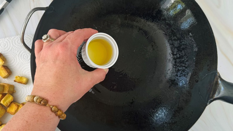 Step 10: Pour the rest of the oil into the pan