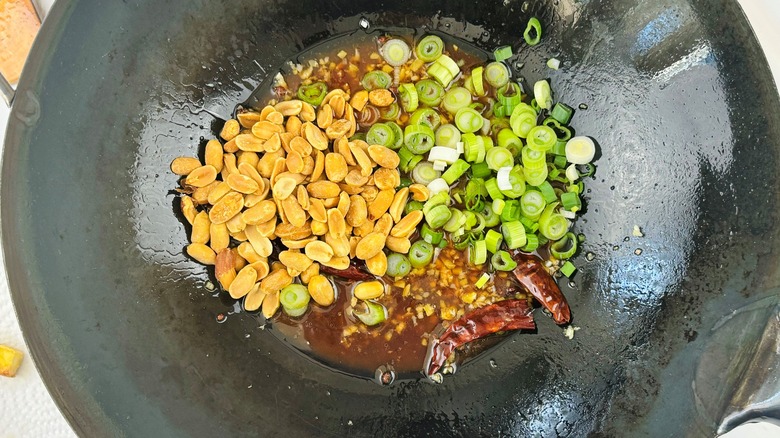 Step 12: Stir in the sauce, scallions, and peanuts