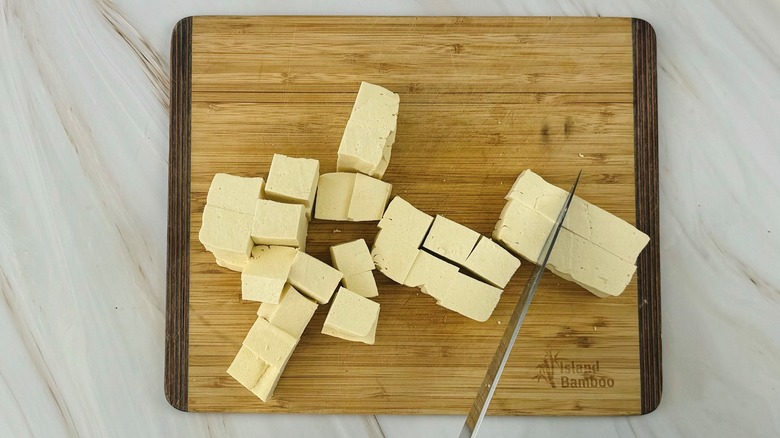 Cut the tofu into 1-inch cubes.