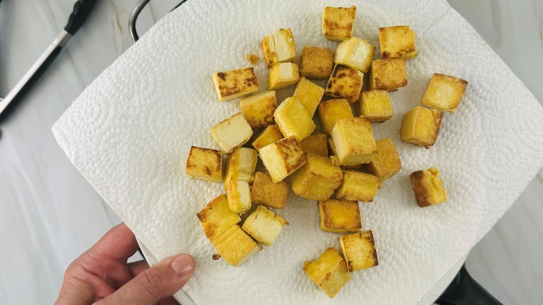 Remove the tofu from the pan and place it on a paper towel.