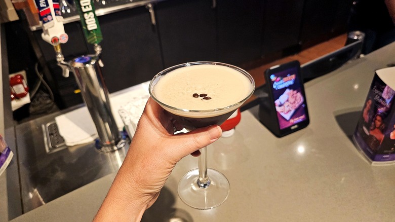 If you've ever enjoyed an espresso martini, you know it's a strong cocktail whose ingredients include espresso or coffee, vodka, and simple syrup. Occasionally a splash of coffee liqueur or rum will be added, as well. It's then shaken up, strained into a coupe glass, and garnished with a few espresso beans. Like so many popular cocktails out there, bartenders have taken this modern classic and turned it on its head, adding to the original recipe or changing it entirely. Chili's is no different.