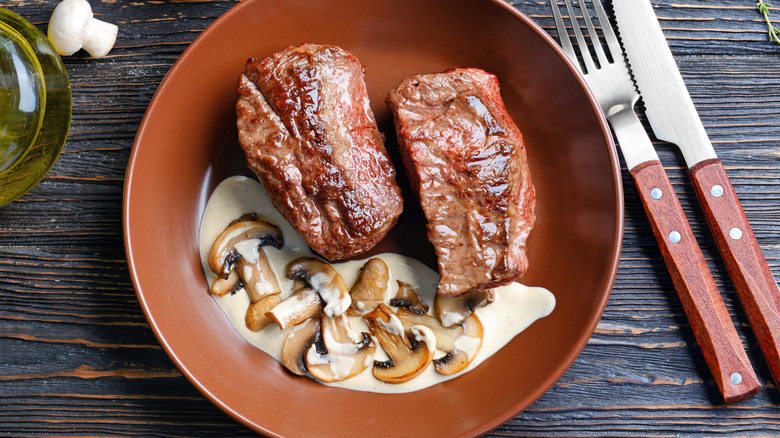 Retro dining classics are an intriguing mix of nostalgia, comfort, and sometimes spectacle. You may not have seen steak Diane prepared by a waiter (yet!), but tableside cooking is definitely making a comeback, as we saw in the list of last year's best food trends. The dish is essentially a mouthwatering pan sauce created at the table and originally designed to highlight medallions of filet mignon, which is fork-tender but not as flavorful as other steaks. That's okay because the buttery mushroom and cognac sauce is supposed to be the star of the show –- but what if you prefer a less pricey steak or even a tastier one?