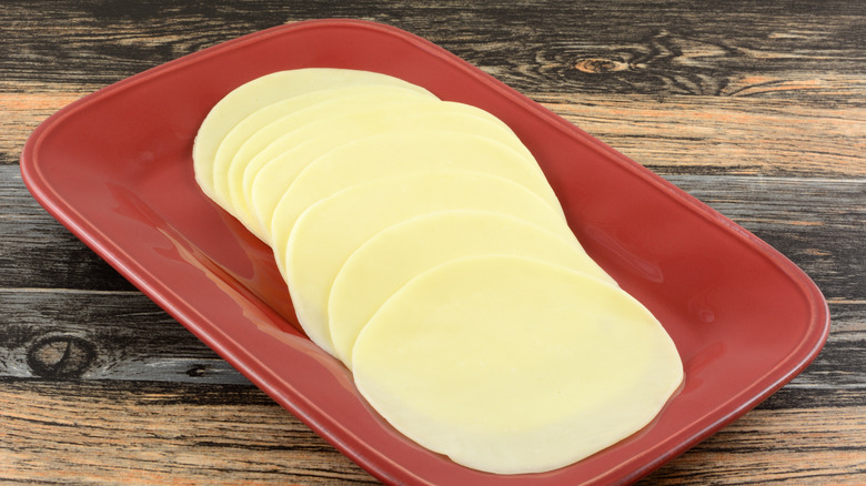 The best type of cheese to melt seamlessly into your omelet is undoubtedly American. This is one of the cheapest and most widely available cheeses that you can buy at the grocery store. It's most often sold in those iconic plastic sleeves; all you need to do is crack one open and tear it into pieces over your omelet. American cheese melts comparatively well because it's made with fillers like milk protein concentrate, skim milk, and milk fat, which together encourage quick, easy melting.