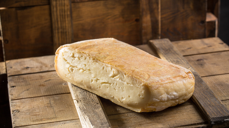 The aroma of this Italian cheese may turn you off at first whiff, but we promise that it's worth trying a bite (or two). Taleggio melts very well and has a toothsome texture that complements the mildness of its flavor. If anything, the flavor of this cheese is unexpectedly fruity — and one that you will taste even after you've finished eating it. Although the rind is entirely edible, it's covered in up to five different kinds of mold that help preserve the cheese and give it its distinctive aroma. To help make this cheese a little more approachable, we recommend removing the rind and just using the soft inside of this cheese.