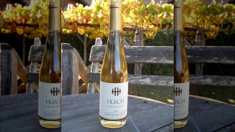 Additionally, when pairing this wine, Natalie MacLean suggests considering "desserts with just a touch of sweetness and some balancing acidity, such as fruit-based pear tarts, apricot cobbler, and baked apples." Try a half bottle of Late Harvest Gewürztraminer by Husch Vineyards to savor the tantalizing concoction.