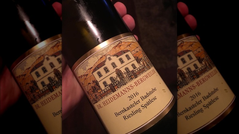 Although this style features plenty of residual sugar, riesling's natural acidity brings it all into balance. You'll be left with a rich, full-bodied wine with notes of stone fruit, mango, lime, white flowers, and a mineral undercurrent. Try a bottle of Bernkasteler Badstube Riesling Spätlese by Dr. Heidemanns-Bergweiler for a ripe and juicy taste of this timeless style. The low alcohol content makes it a balanced option to pair with a final cheese course, contrasting the creamy richness with its sweet and tangy quality. Additionally, be sure to skip bottles labeled as "trocken," as they will be dry and not as pleasant if you're serving them with dessert.