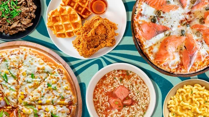 A popular Southern classic, fried chicken and waffles is a warming breakfast dish, the perfect merger of savory and sweet. The fluffy waffles act as a base for juicy chicken, which is often topped with a drizzle of maple syrup or a dash of hot sauce. At Cuts and Slices in New York City, a pizza shop that focuses on imaginative toppings from oxtail to chopped cheese, there is a unique slice inspired by the southern dish.